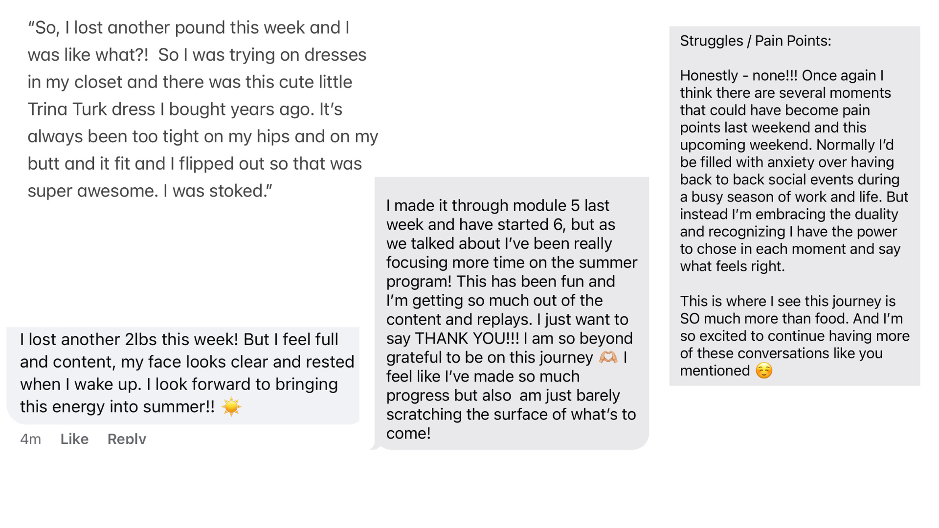 | → | Do you feel like foods control you? Nope, not here! My clients are changing the narrative just months! Wildly inappropriate and disruptive in the best way possible to the diet space. |